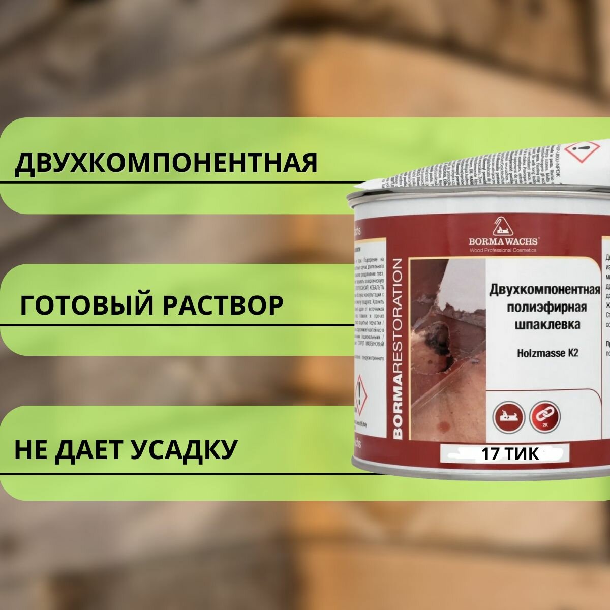Шпаклевка полиэфирная по дереву двухкомпонентная BORMA HOLZMASSE K2 17 Тик 750мл 1960TE-6T