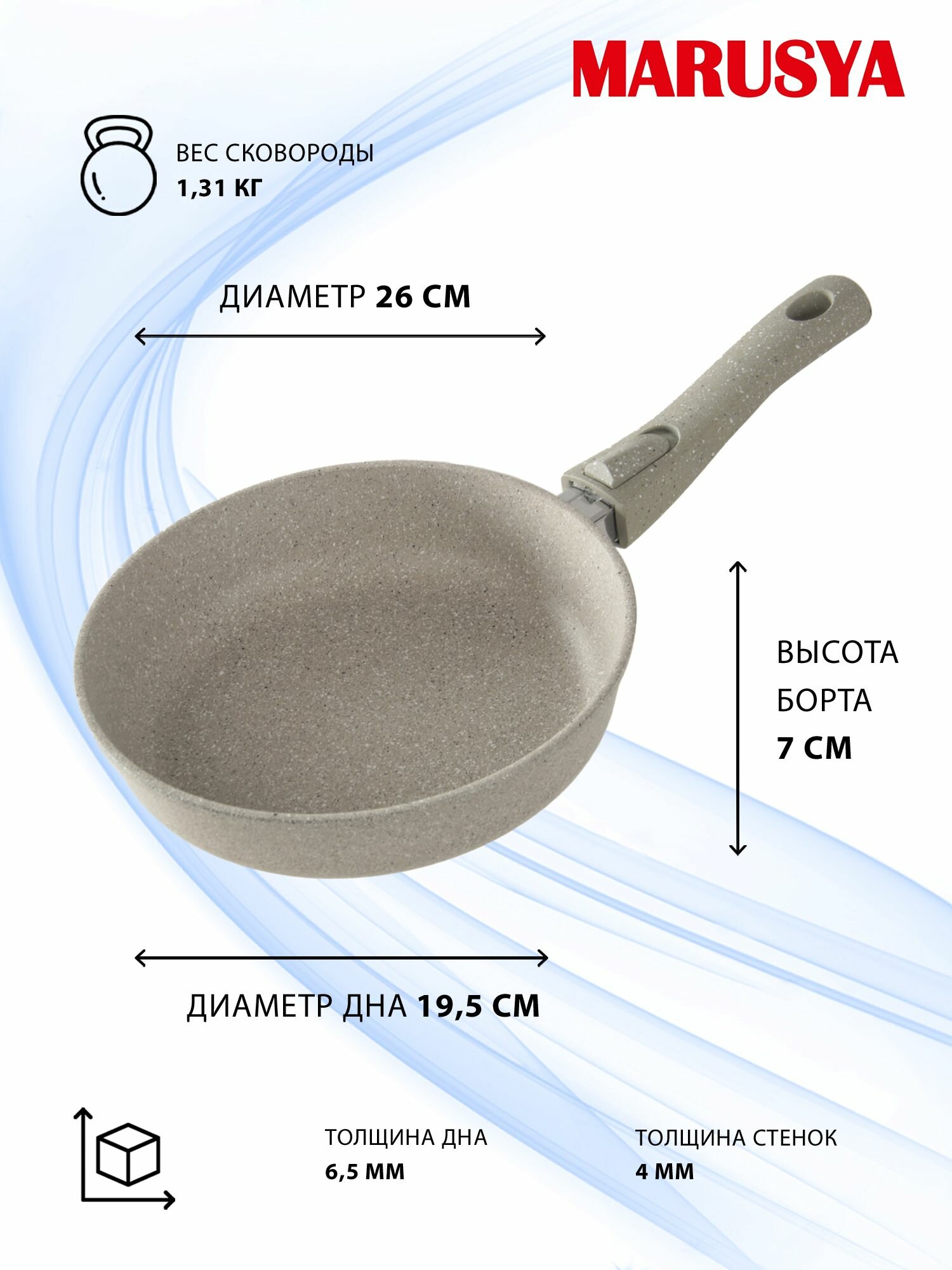 Сковорода с антипригарным покрытием со съемной ручкой Marusya 26 см из литого алюминия для газовой и электрической плиты интересное: