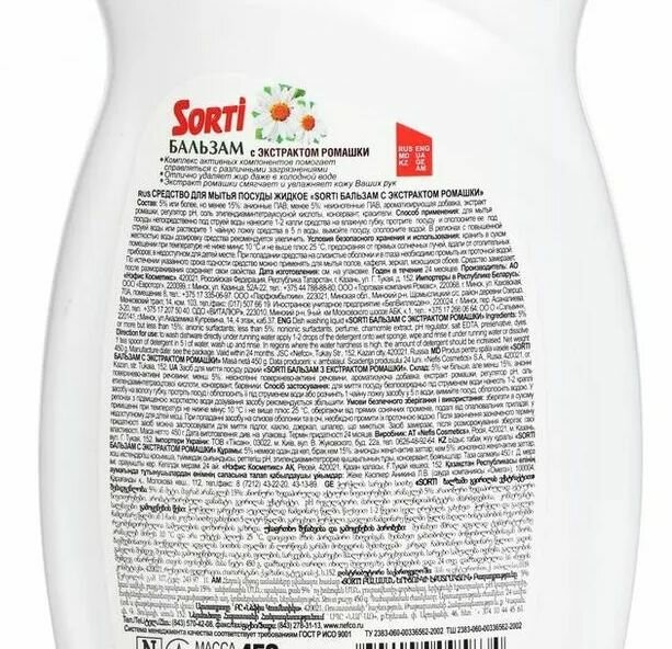 Купить Средство(жидкость ) для мытья посуды SORTI (Капля Сорти) Бальзам с ромашкой