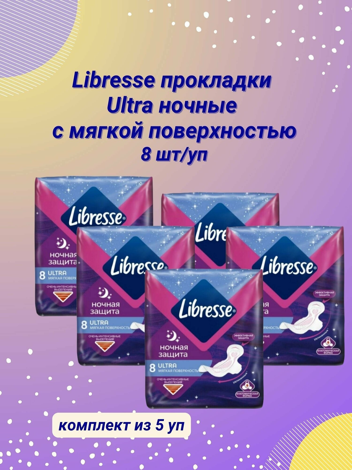 Либресс / Libresse Набор 5шт Прокладки женские Гигиенические Ultra Night 8 шт