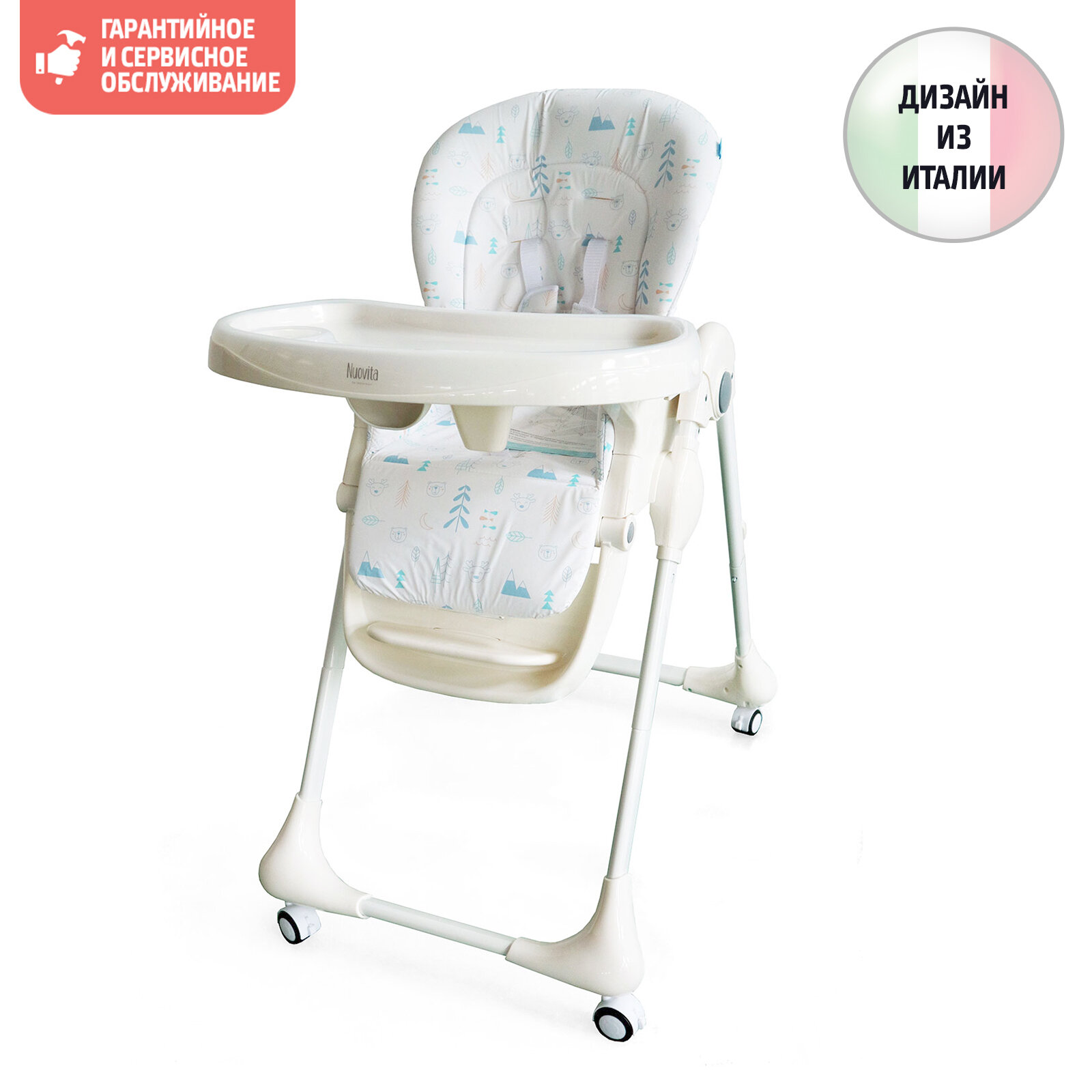 стул на колесиках - намного упрощает его передвижение и не портит пол. Ремешки безопасности пятиточечные, надежные, с накладками. Столик с бортиками - практично, особенно когда малыш что то проливает то это не стекает сразу на пол. Чехол легко моется. Можно менять положение спинки, подножки, столешницы и высоту кресла. Складывается в одно движение и ждет своего часа стоя в уголке, никому не мешая. Стульчиком довольна! пятерка!