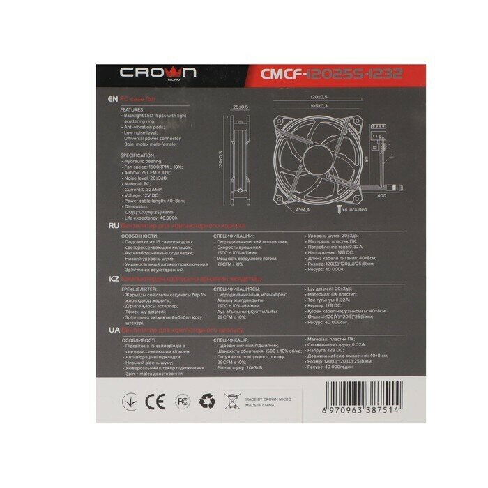 Вентилятор для корпуса Crown Micro CMCF-12025S-1232 CM000002229
