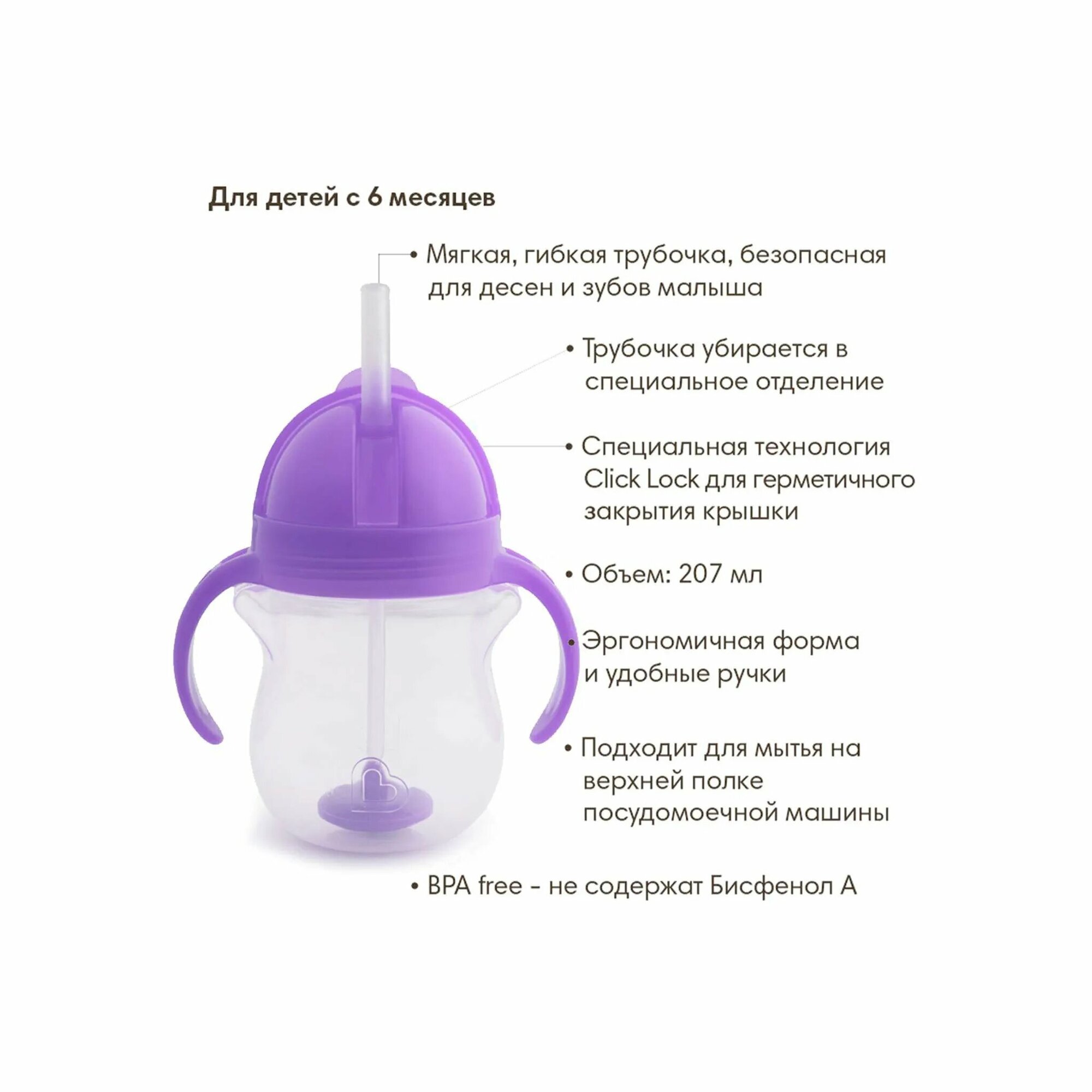 Munchkin поильник Click Lock Any Angle™ с трубочкой и ручками фиолетовый 207 мл. 6+