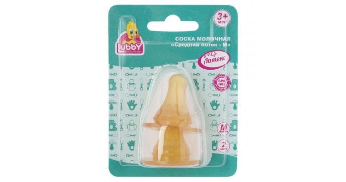 Lubby Набор латексных сосок, 2 шт., М от 3 мес., средний поток