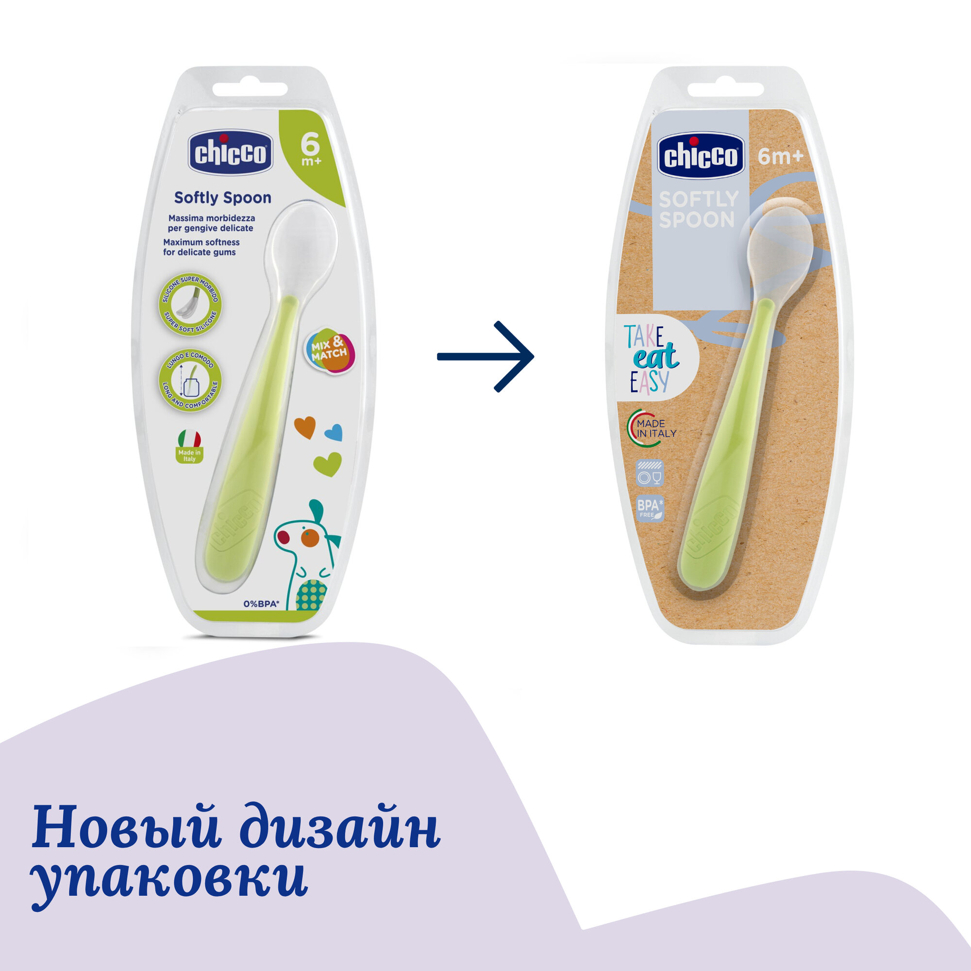 Купить Ложка детская для кормления Chicco мягкая силиконовая от 6 месяцев зеленая