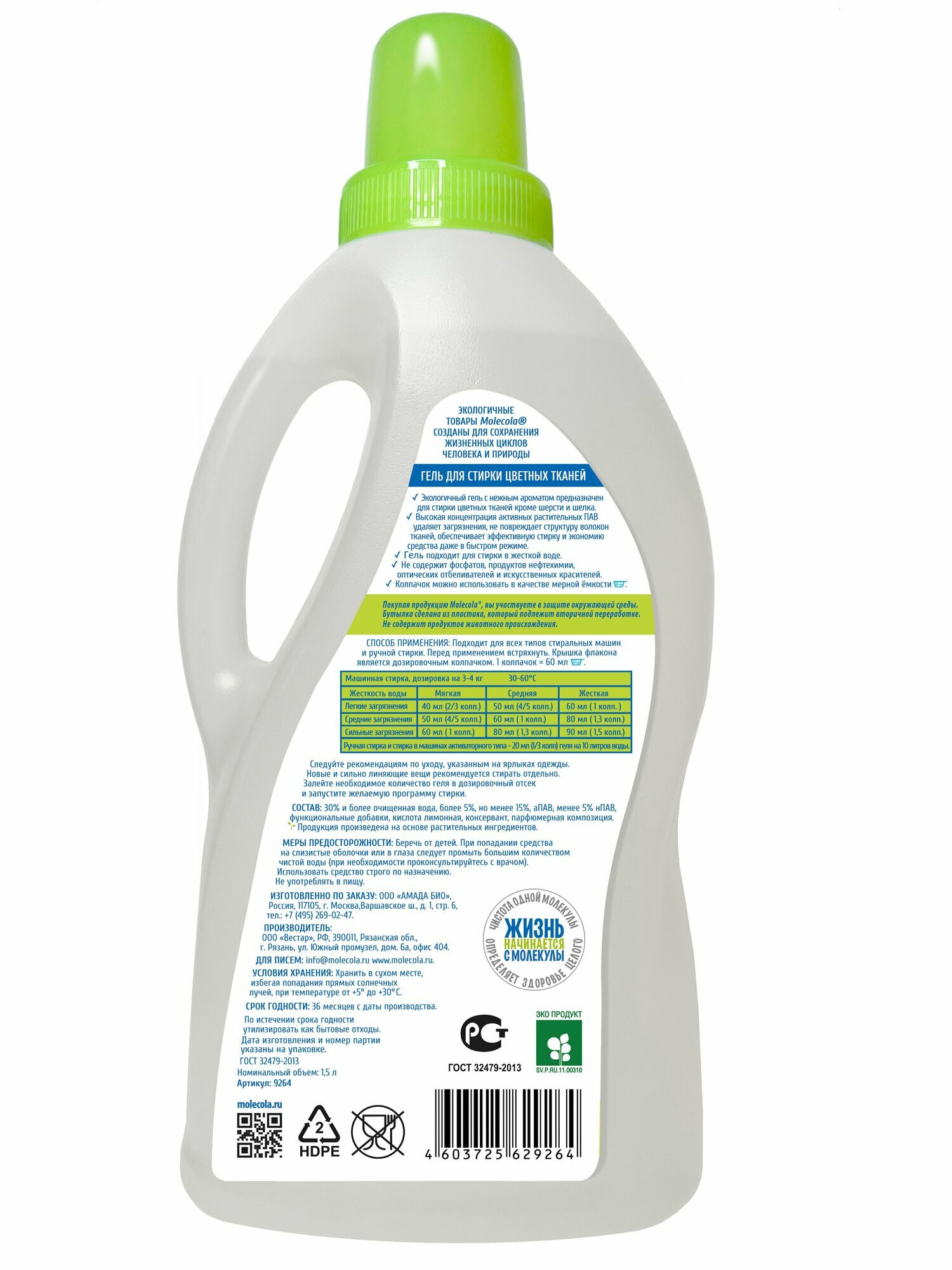 Гель MOLECOLA для стирки цветного и линяющего белья экологичный 1500 мл