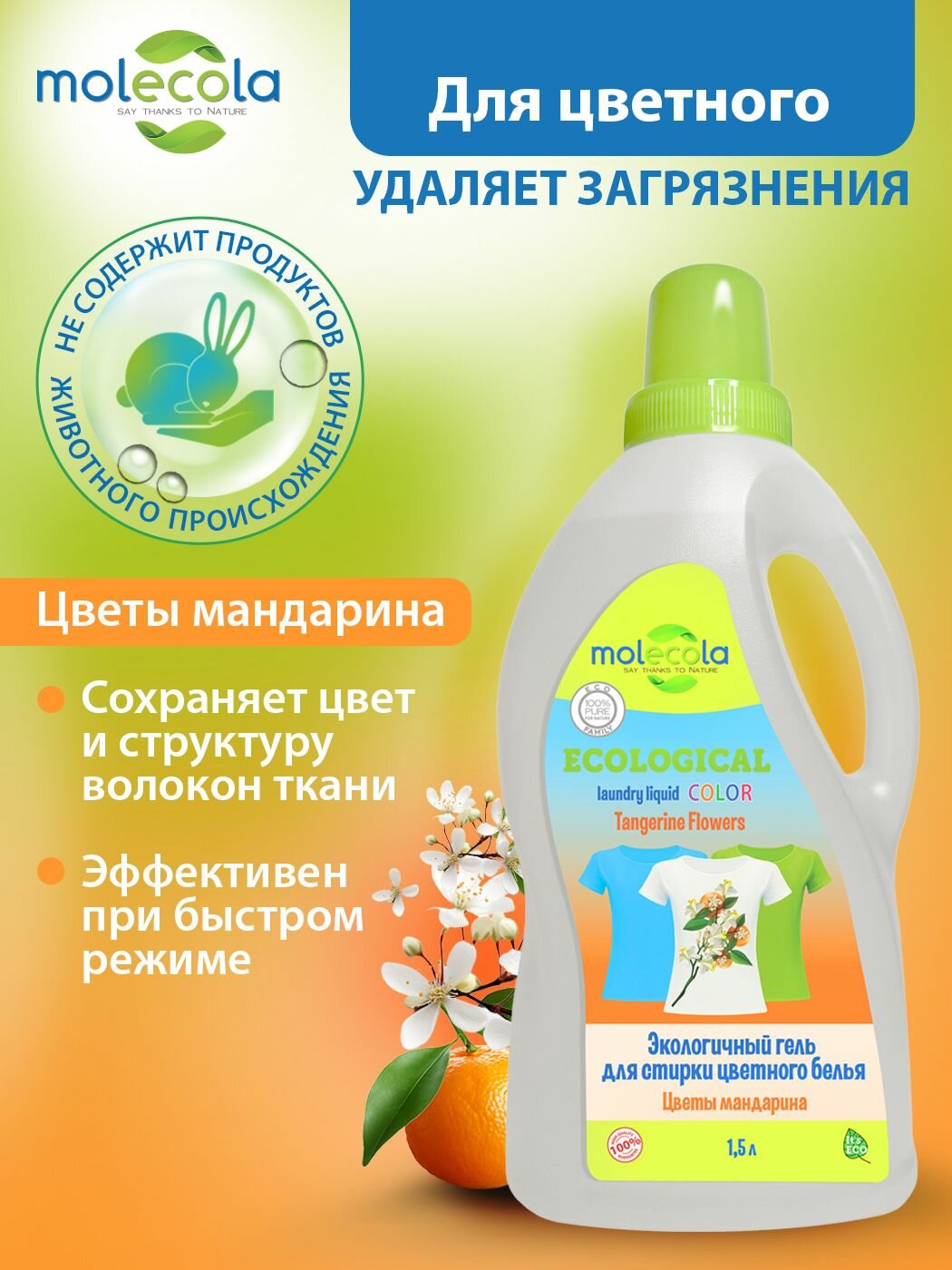 MOLECOLA "NEW Экологичное ср-во для стирки цветного белья ""Цветы мандарина"". 1,5л
