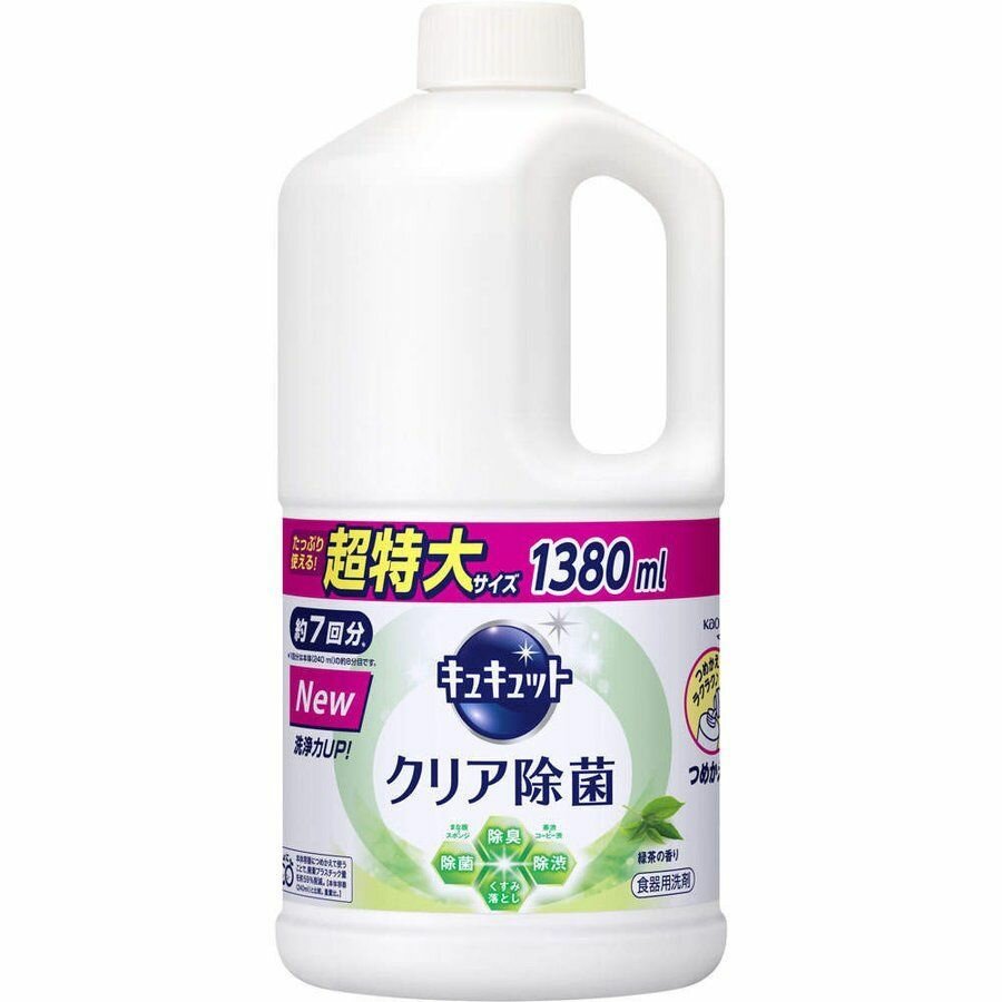Купить KAO CuCute Cредство для мытья посуды концентрированное антибактериальное аромат зеленого чая 1380 мл сменная упаковка