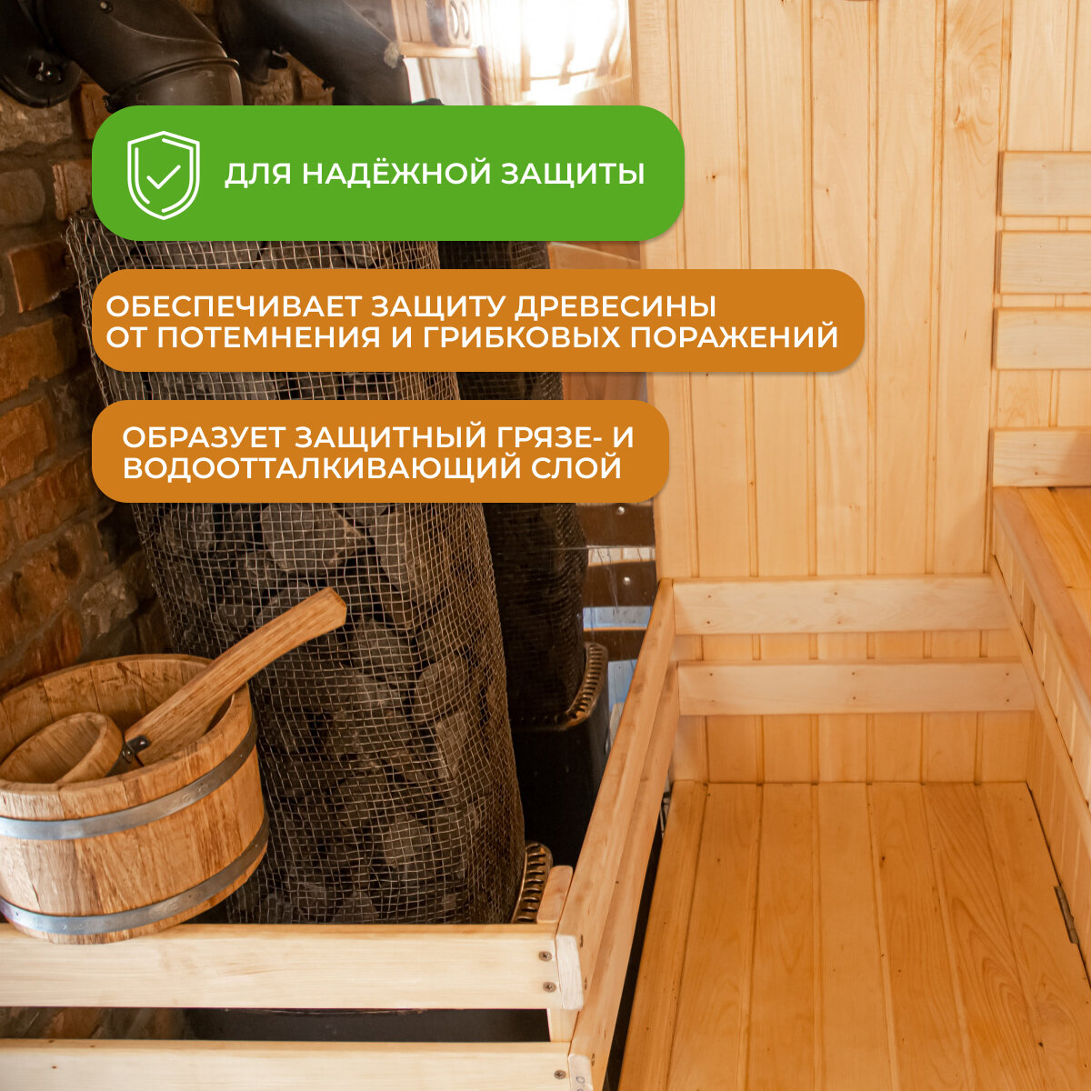 Акриловый лак для бань и саун NEOMID SAUNA полуматовый, без запаха (1 л) / Для защиты древесины во влажных условиях
