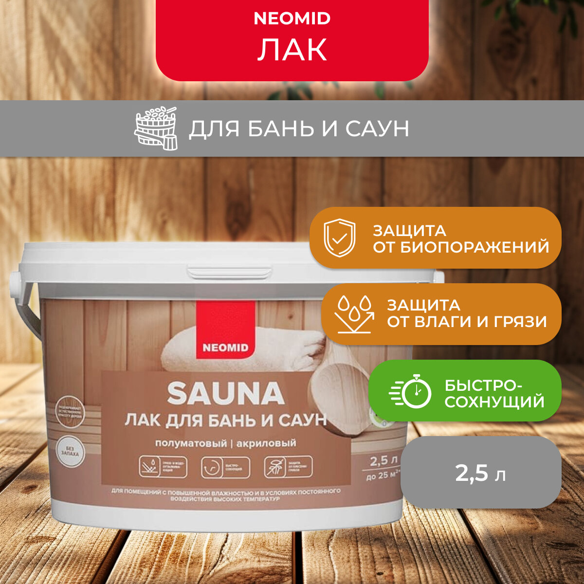 ЛАК для бань И саун NEOMID SAUNA, 2,5л до 25м2