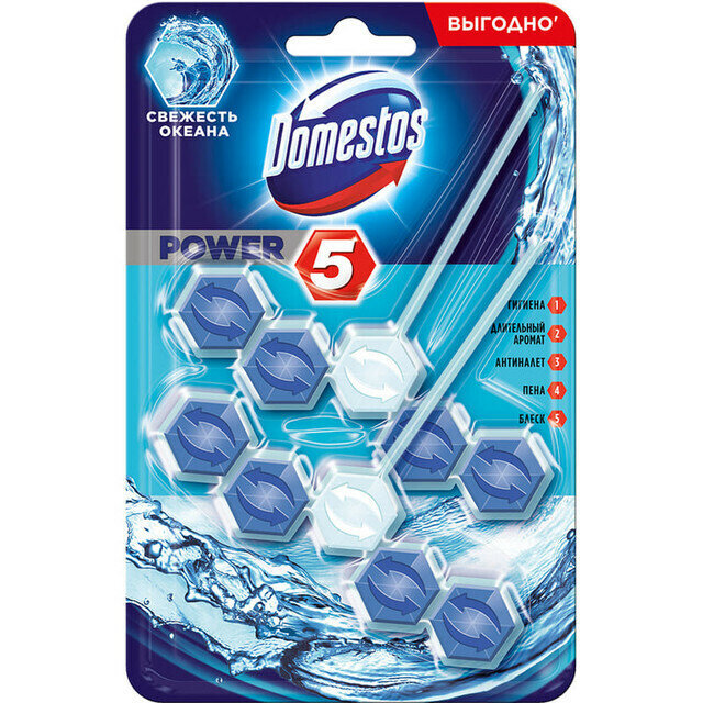 Domestos блок для унитаза Power 5 Свежесть океана, 3 шт., 0.055 кг