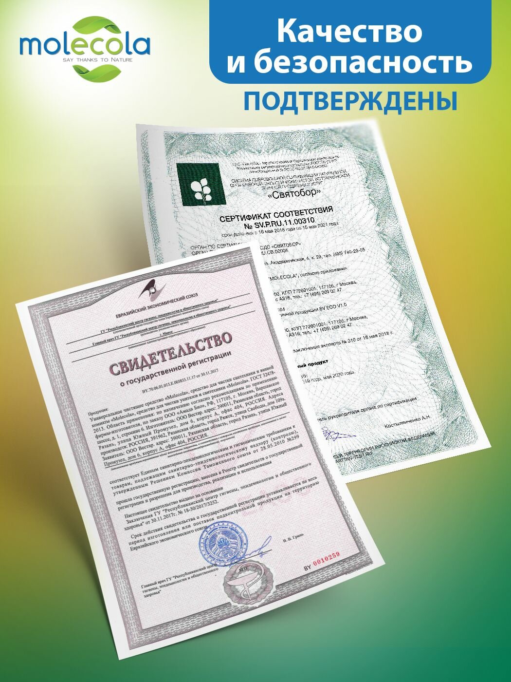 2 Шт. MOLECOLA Эко ср-во д/чистки унитазов и сантехники "Зеленый можжевельник" 750мл