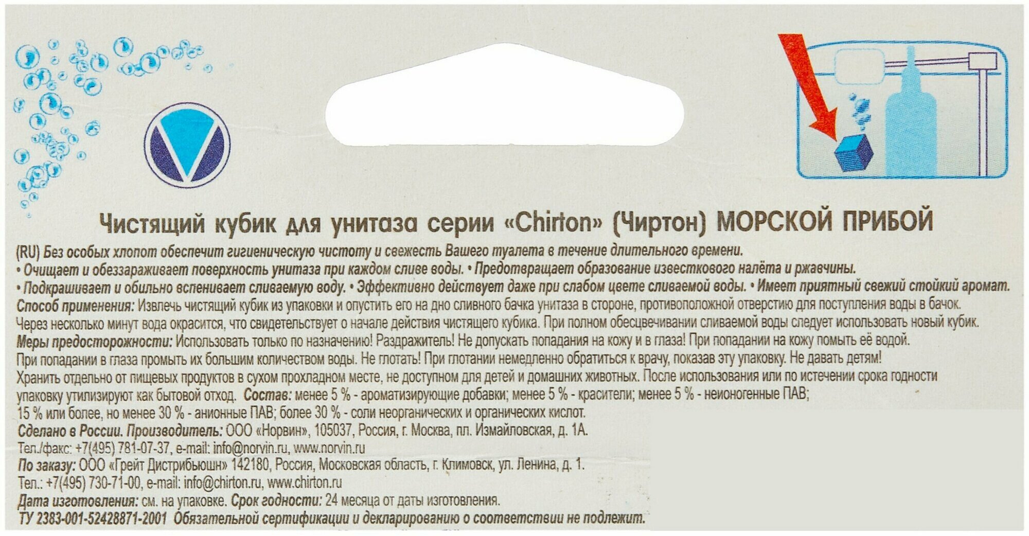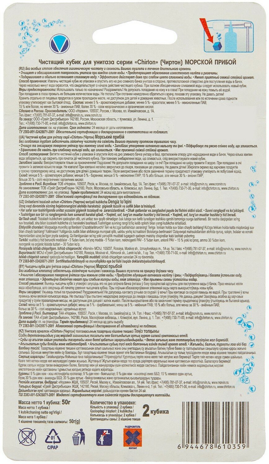 Купить Chirton Чистящие кубики для унитаза Морской прибой 50 гр 2 шт