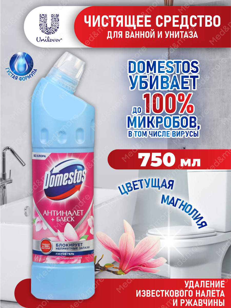 Универсальное чистящее средство-гель Domestos цветущая магнолия антиналет + блеск 750 мл ( 2 шт )