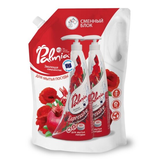 Гель для мытья посуды Palmia "Espressiva" с ароматом граната и красных маков, 1 л, дой-пак