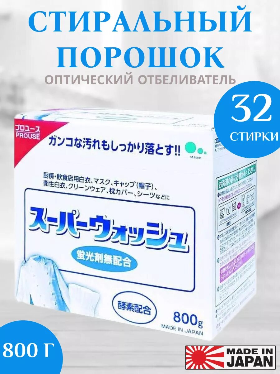 Купить Стиральный порошок Mitsuei, Мощный отбеливающий порошок стиральный автомат "Super Wash" 800 гр. для стирки белого белья с ферментами,автомат Япония