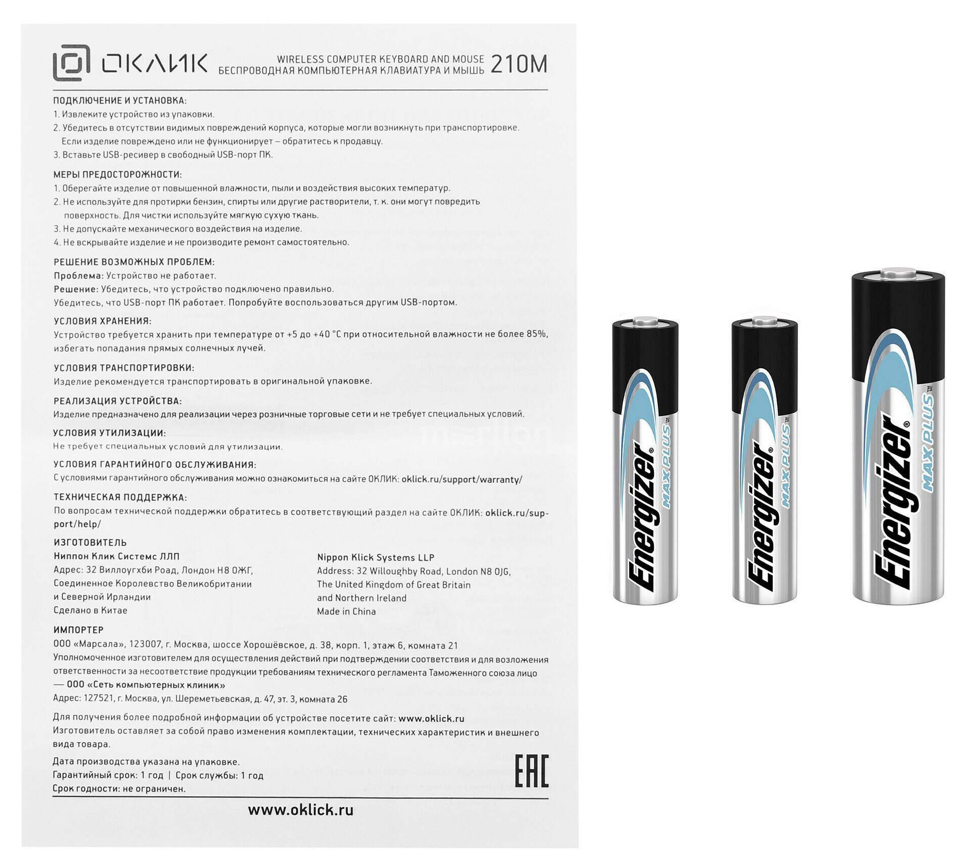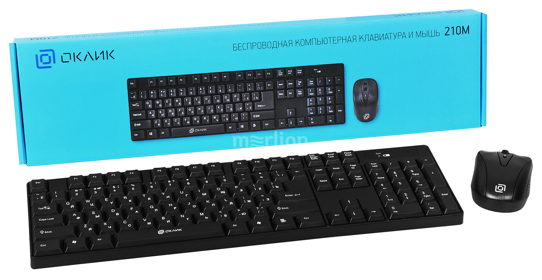 Компьютерный набор Oklick клавиатура, мышь, "210m", черный, usb, беспроводной
