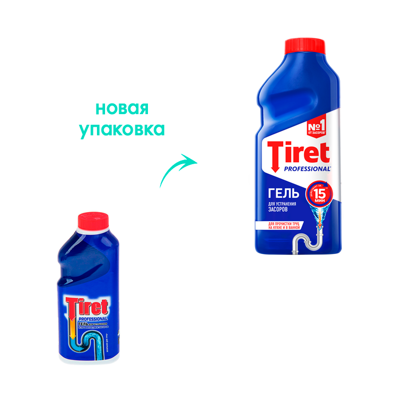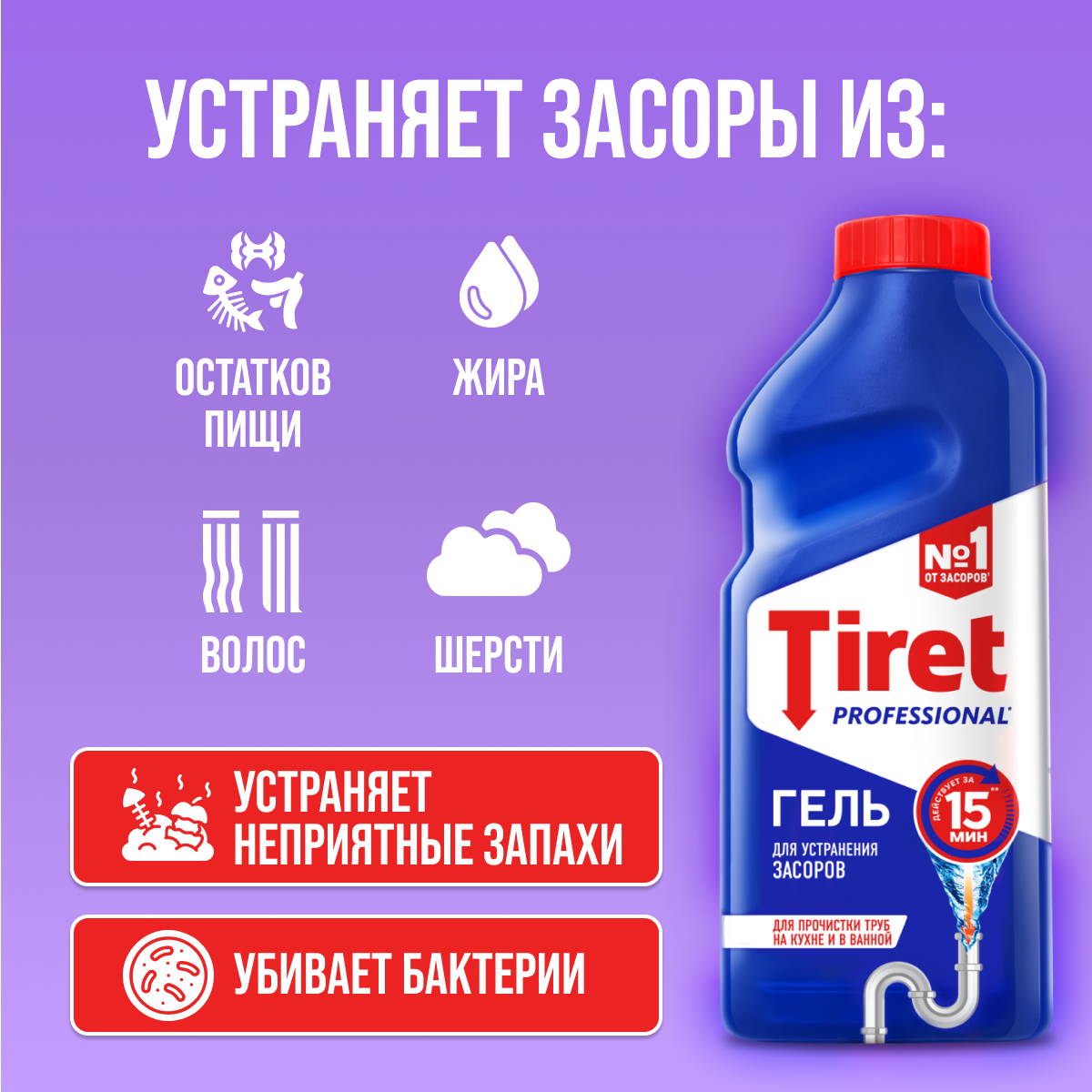 TIRET Профессионал Гель для удаления засоров в канализационных трубах, 1 л