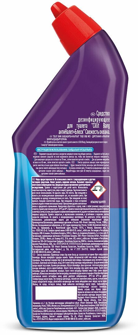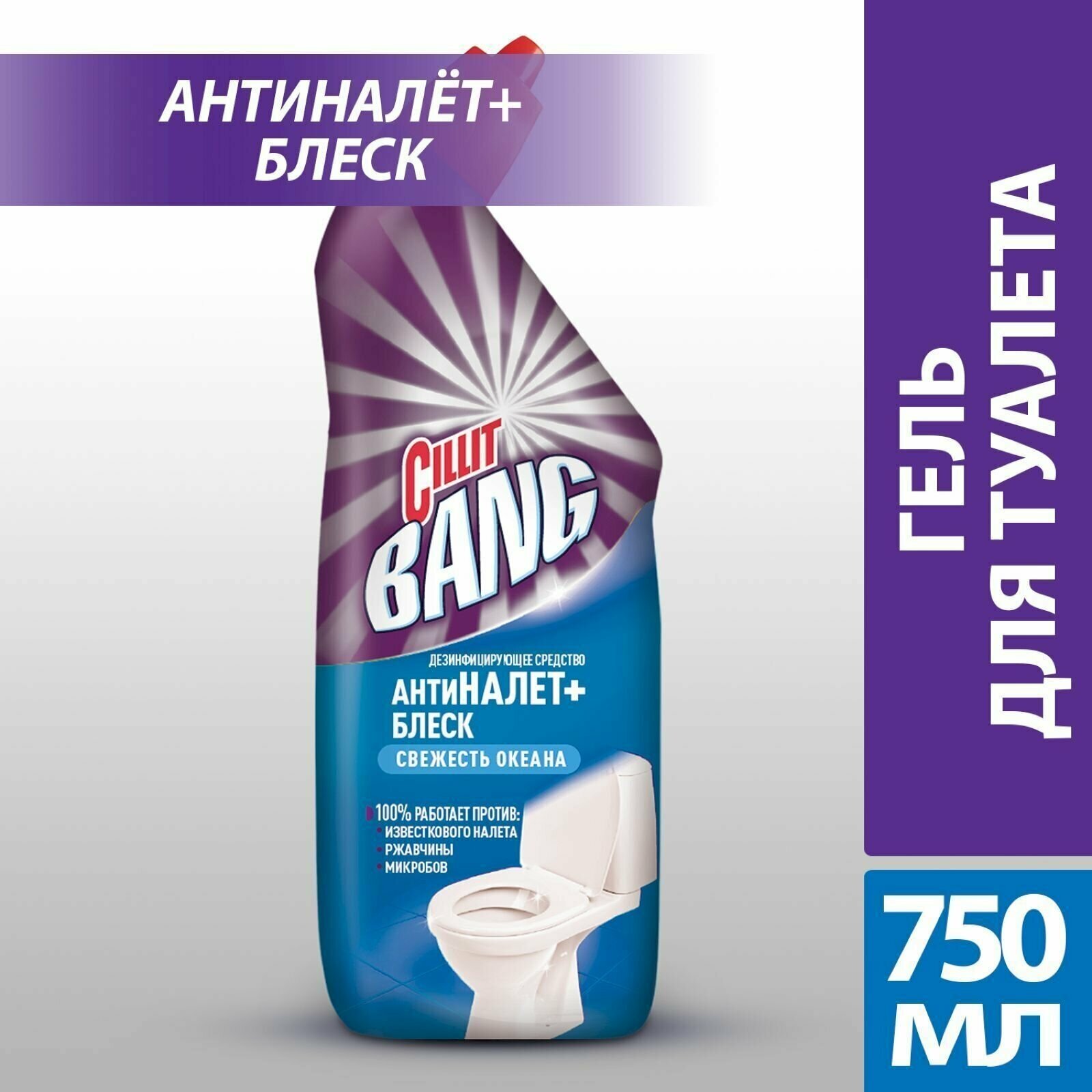 Средство для уборки туалета дезинфицирующее 750 мл CILLIT BANG "Антиналет+Блеск", Свежесть океана, 07813, 8149771 В комплекте: 1шт.