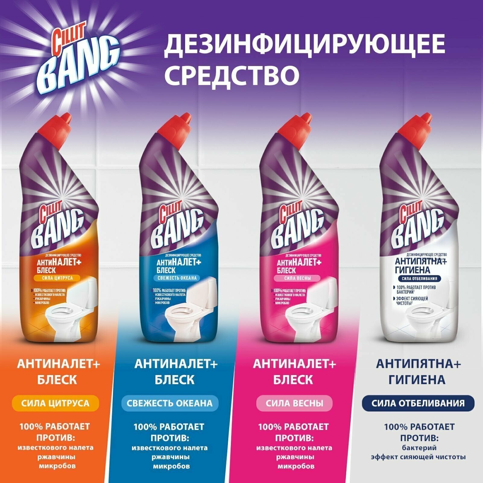 Cillit Чистящее средство для туалета Bang Анти-налет и Блеск, Сила весны, 450 мл, 2 шт