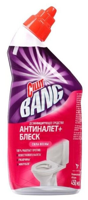 Cillit Чистящее средство для туалета Bang Анти-налет и Блеск, Сила весны, 450 мл, 2 шт