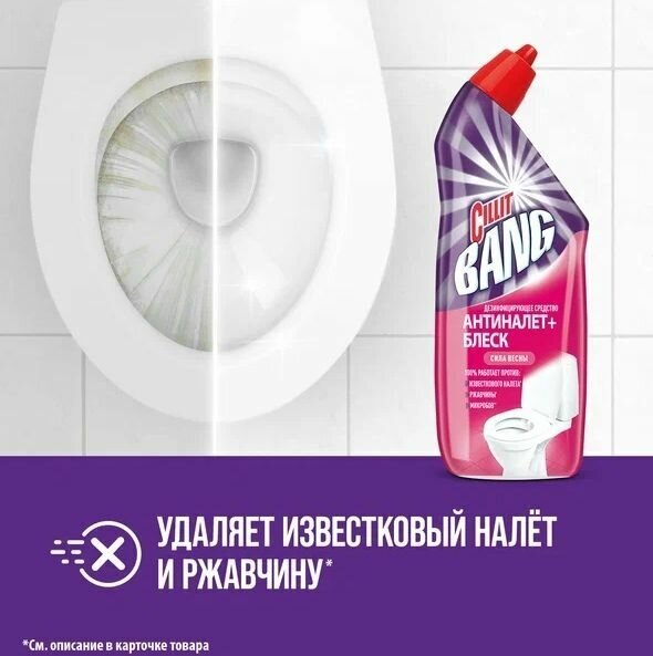 Средство для унитаза Cillit Bang, Анти - налет + Блеск, Сила цитруса, 750 мл, дезинфицирующее, 8149770