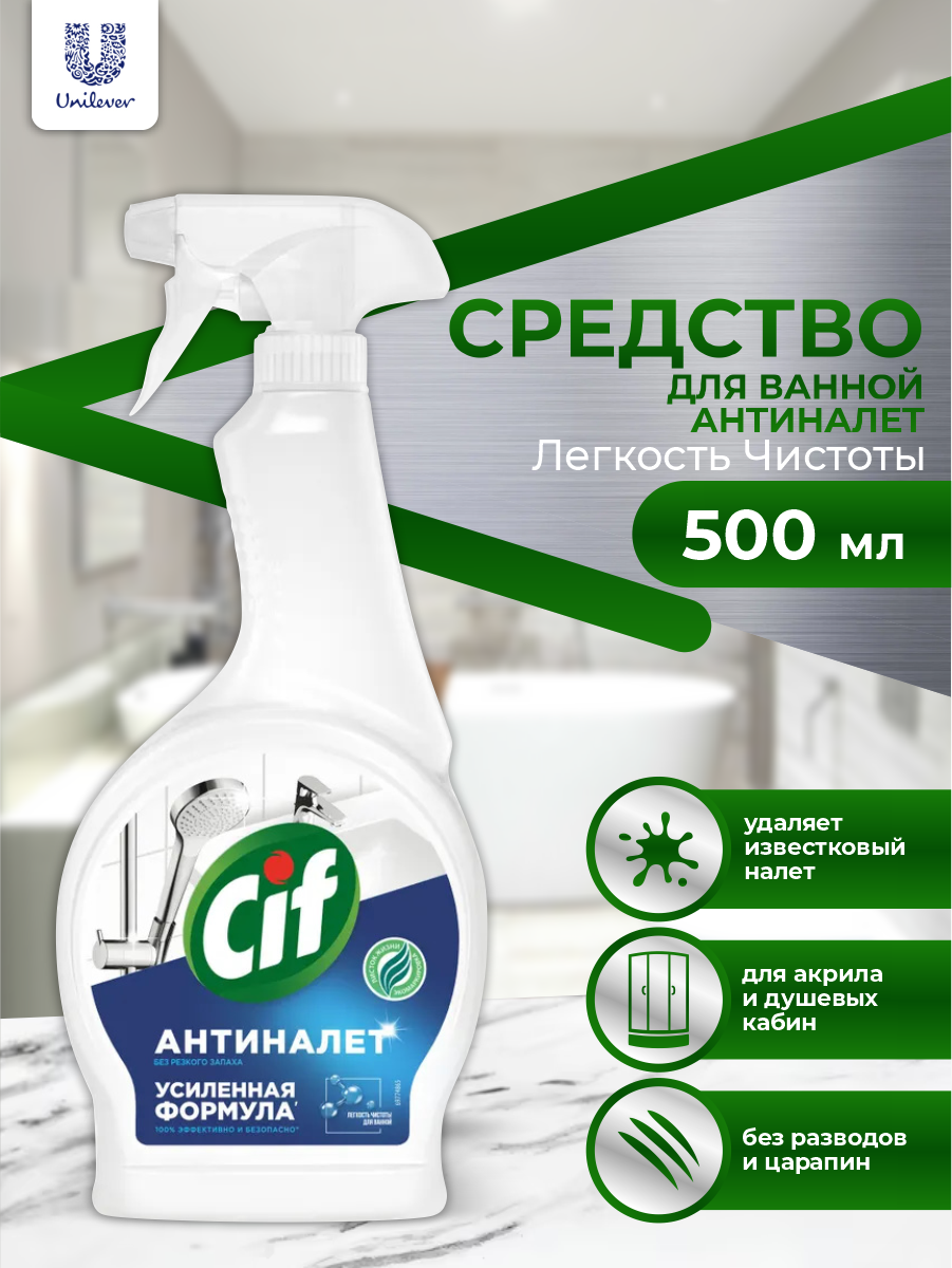 CIF Чистящее средство для ванной Антиналет Легкость чистоты 500 мл. спрей интересное: