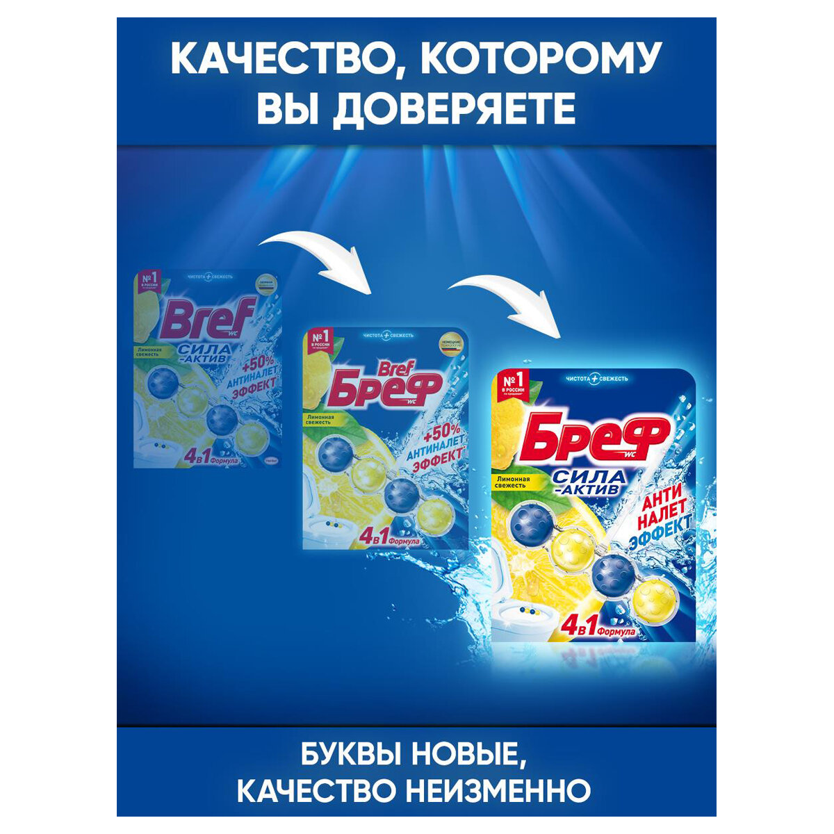 Блок для унитаза Bref бреф Сила Актив Лимонная Свежесть, 3*50 г