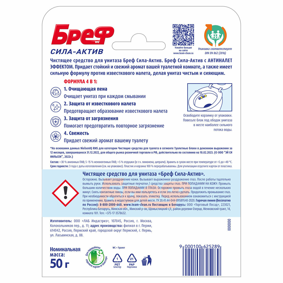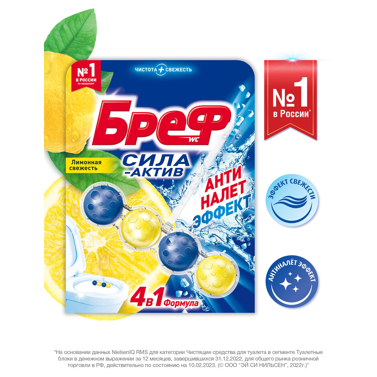 Гигиенический блок для унитаза Bref "Сила-Актив. Лимонная свежесть", 2x50г, блистер (9000100656832)