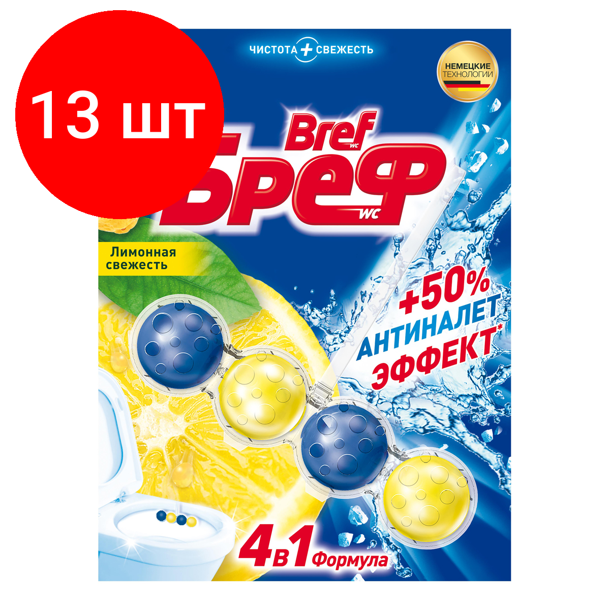 Купить Комплект 13 шт, Подвесной блок для унитаза Бреф "Сила-Актив", лимонная свежесть, 50г, блистер