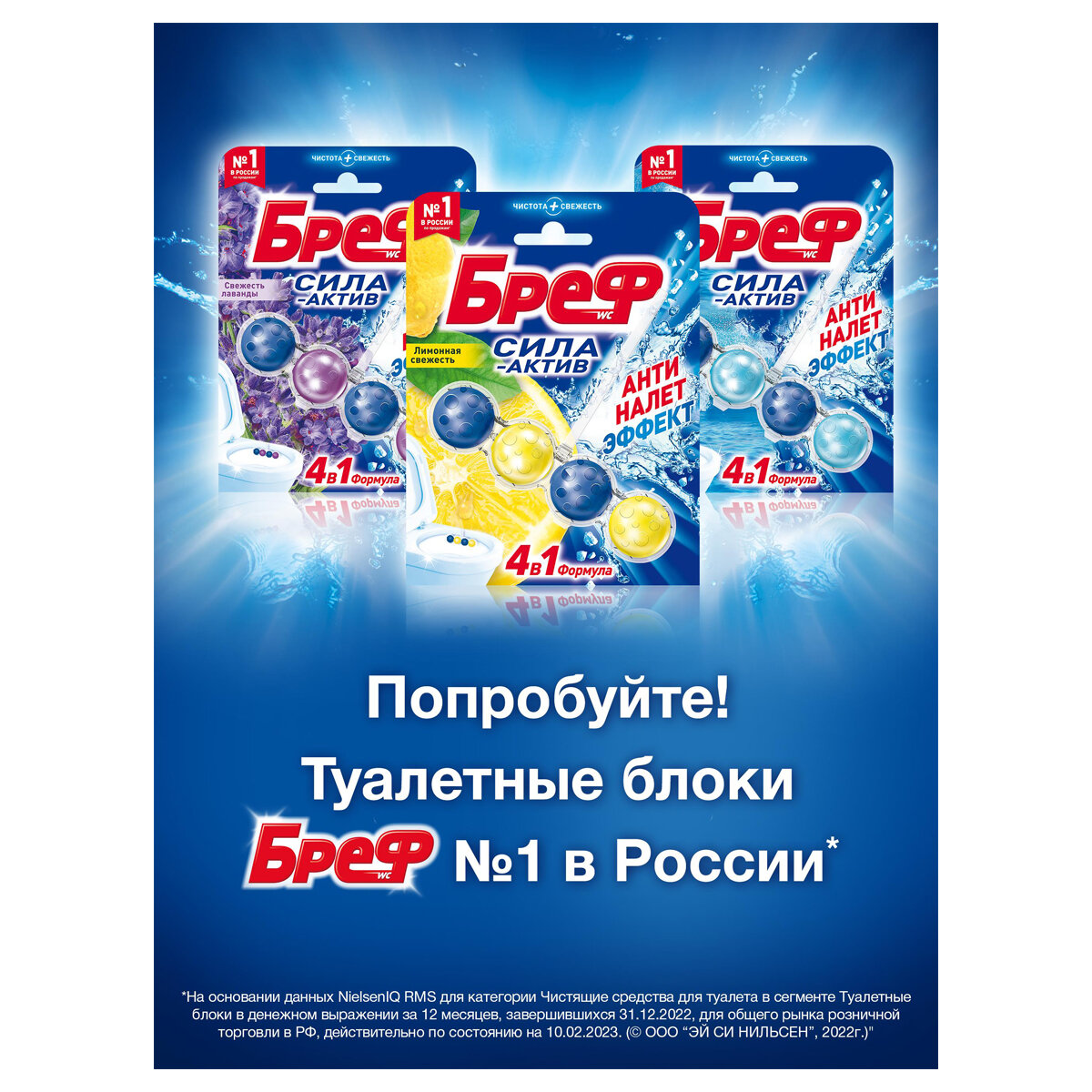 Блок для чистки и свежести унитаза Bref Сила актив 4 в 1 Bref Сила актив "Свежесть лаванды", 3 шт x 50 г