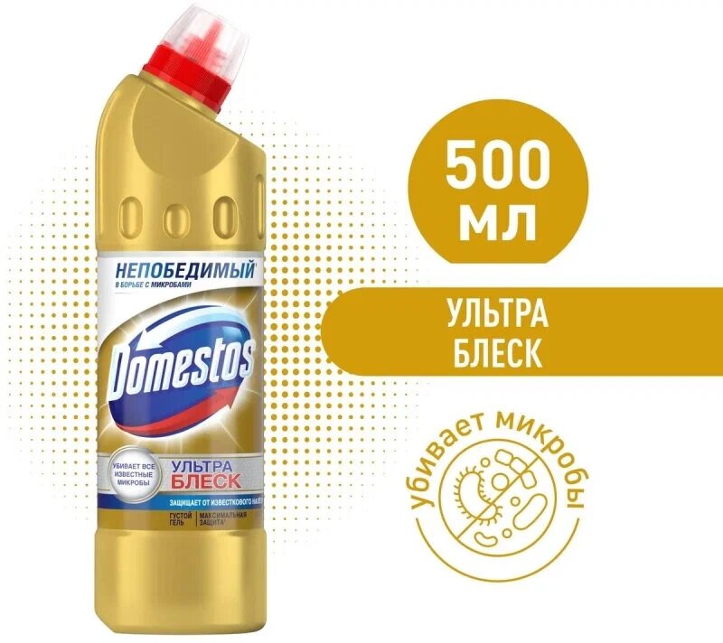 Купить Ультра Блеск, чистящее средство для туалета и ванной, эффективное отбеливание Domestos, 500 мл комплект 2 шт
