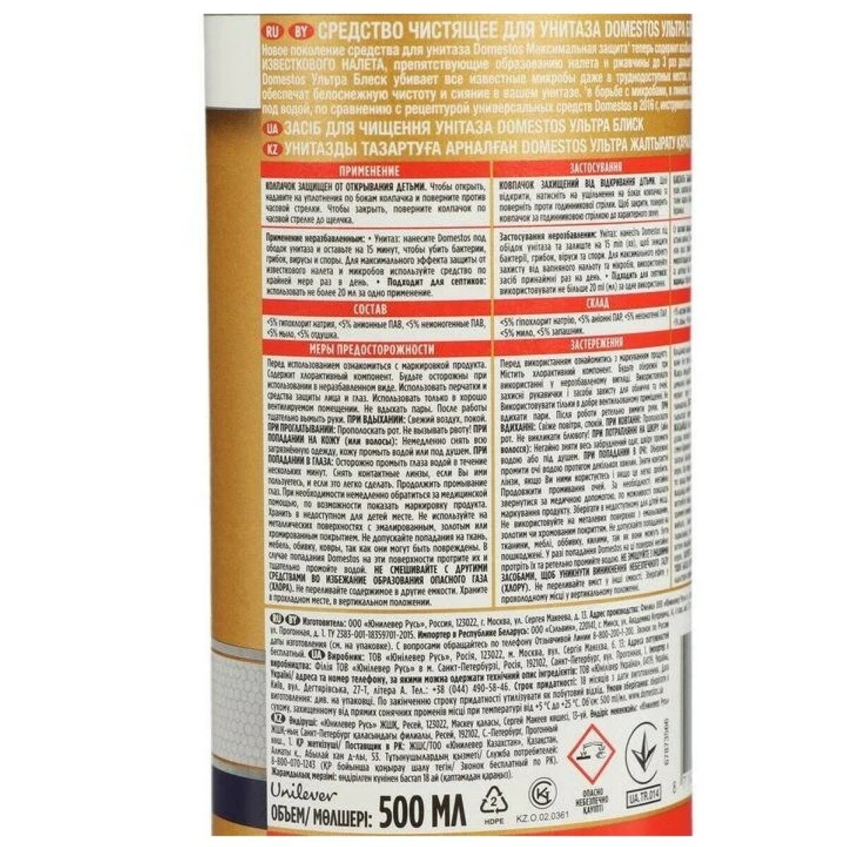 Средство универсальное Domestos Ультра Блеск (500 мл) - Unilever