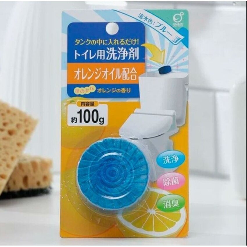 Okazaki очищающая и дезодорирующая таблетка для бачка унитаза, окрашивающая воду в голубой цвет с ароматом апельсина, 100 гр