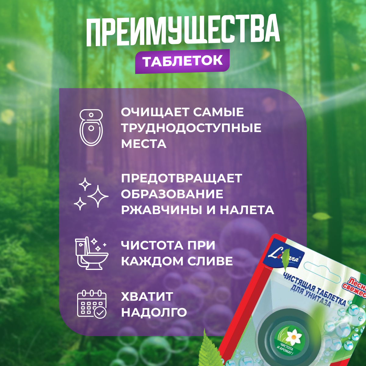 Купить Чистящая таблетка Chirton для унитаза Лесная свежесть 2 х 50 г
