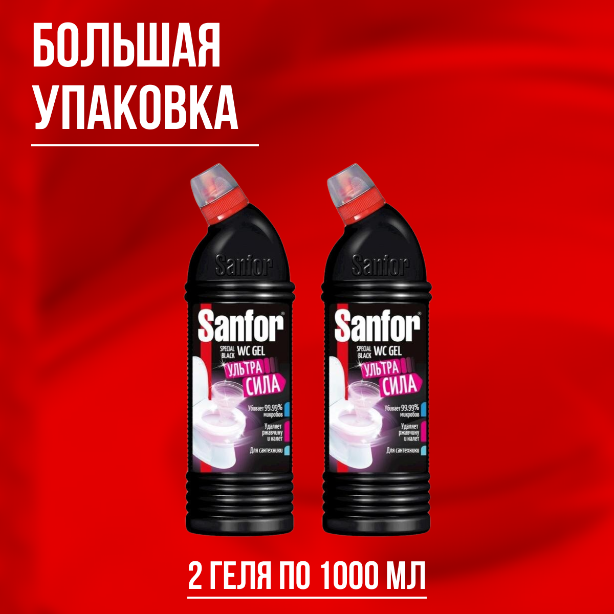 Комплект 2 штук, Средство для сантехники Sanfor WС гель speсial black 1000гр