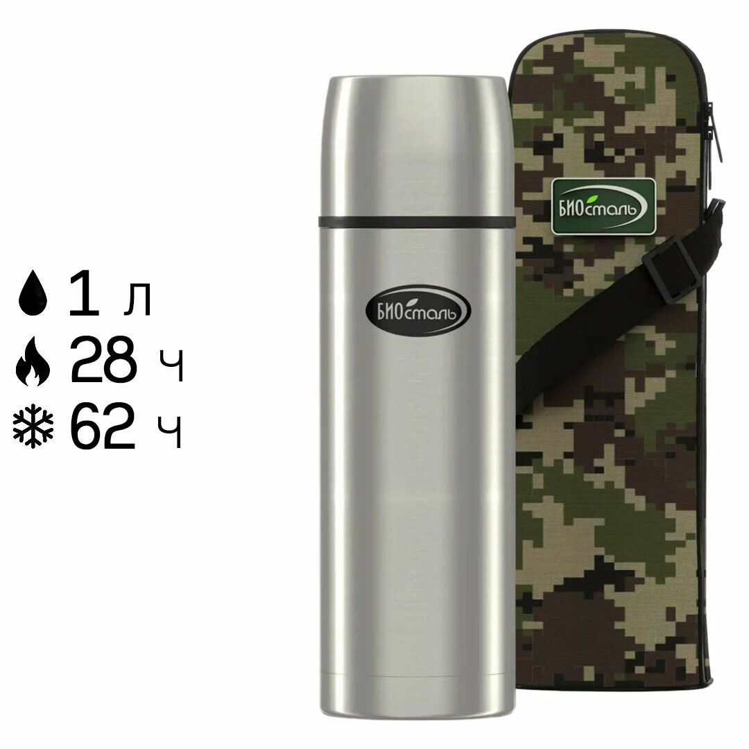 Термос биосталь Охота NBP-1000 B с термочехлом, 1,0л, серебристый