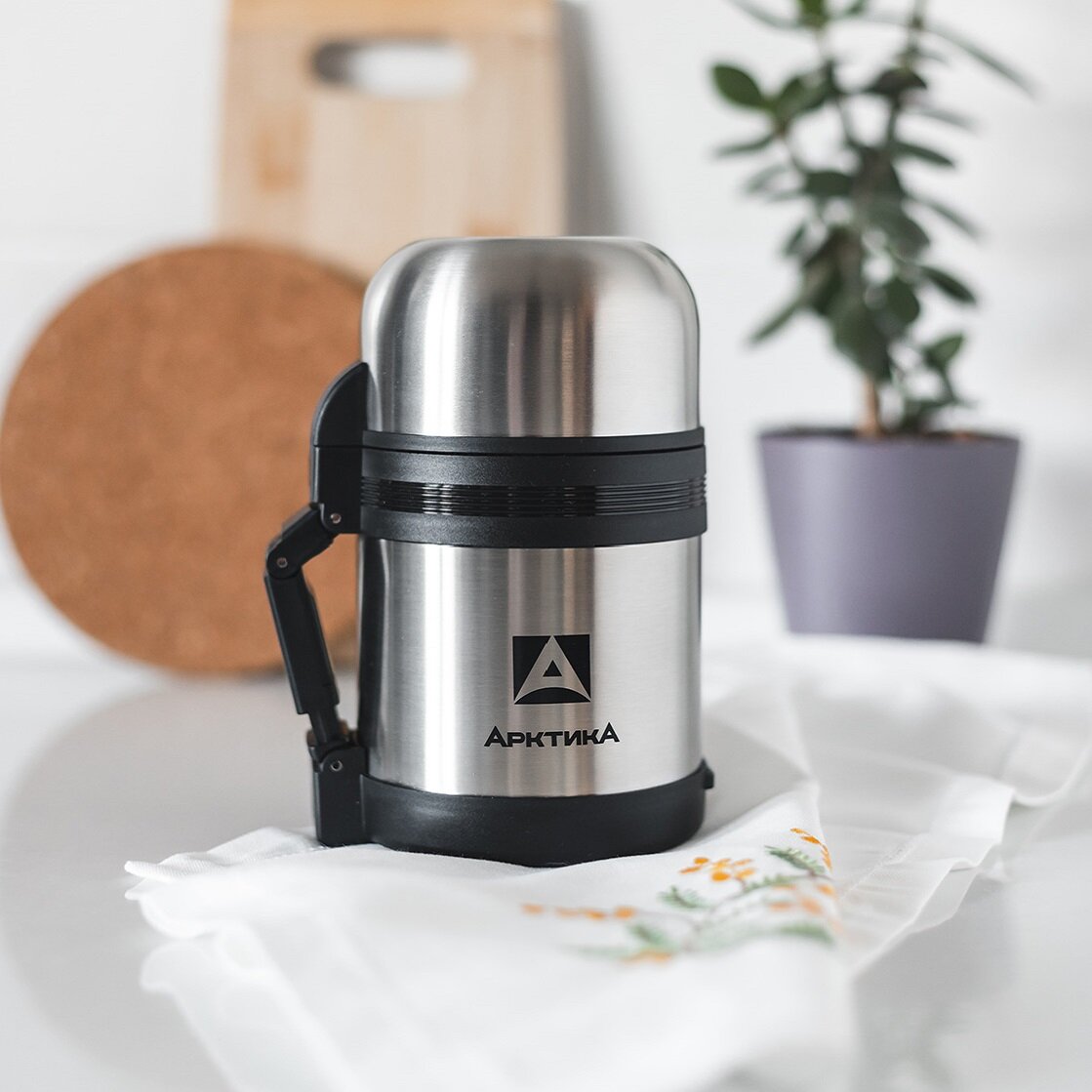 Достаточно долго держит температуру. Легко разбирается и моется. Горловина широкая, вполне можно налить туда супца. |