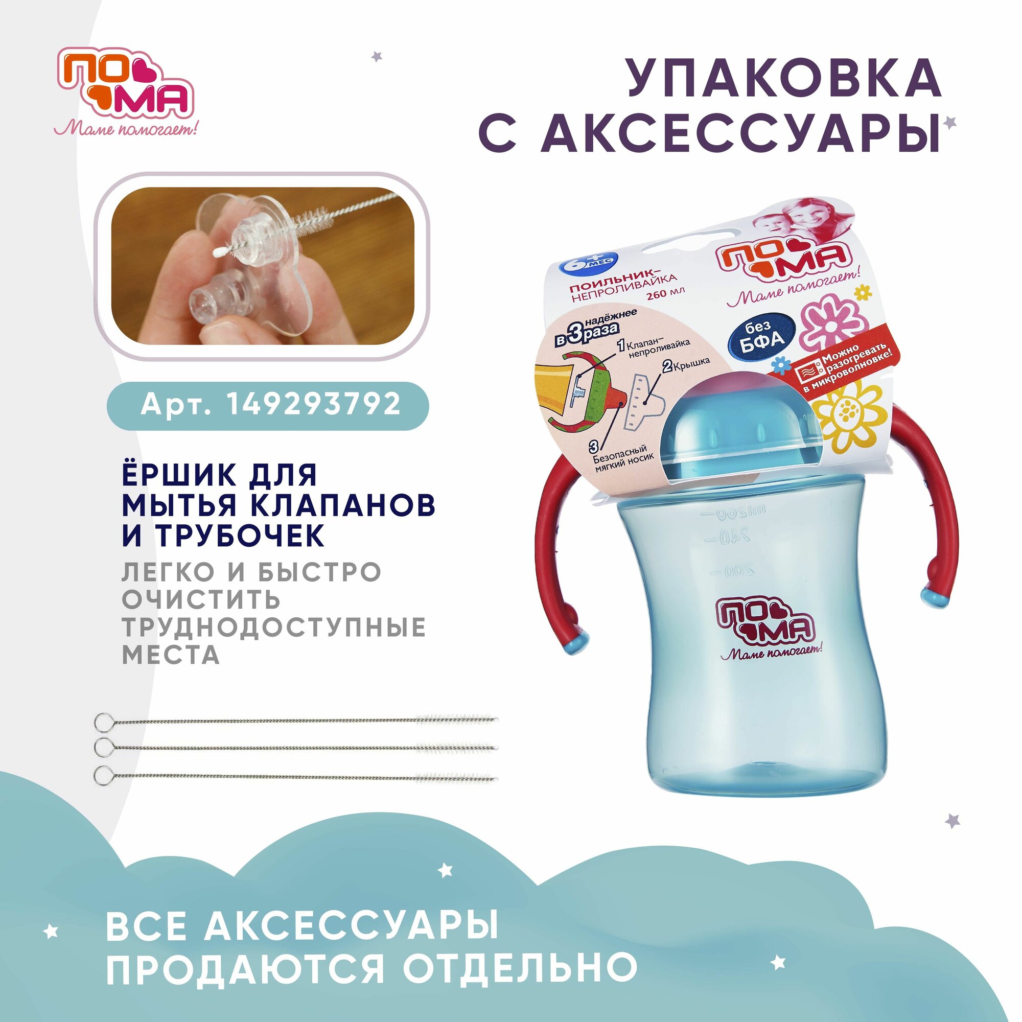| Дополнительная информация | ПОМА Поильник-непроливайка 260мл ручки/крышка 6м+ |