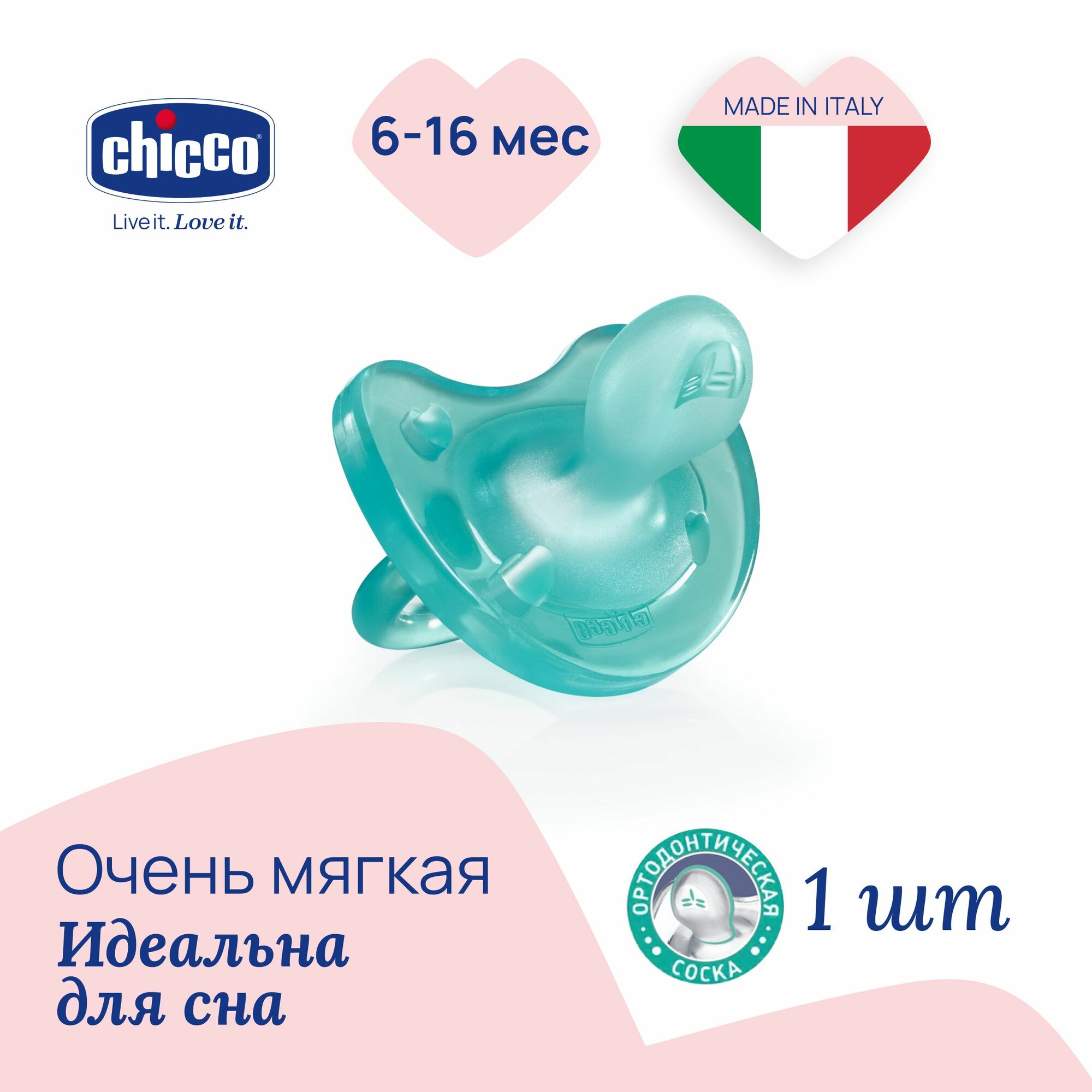 Пустышка Chicco Physio Soft анатомическая силиконовая, 6-12 мес., розовая/соска пустышка 0/для новорожденных/держатель для соски/силиконовая соска / чико/подарок новорожденному