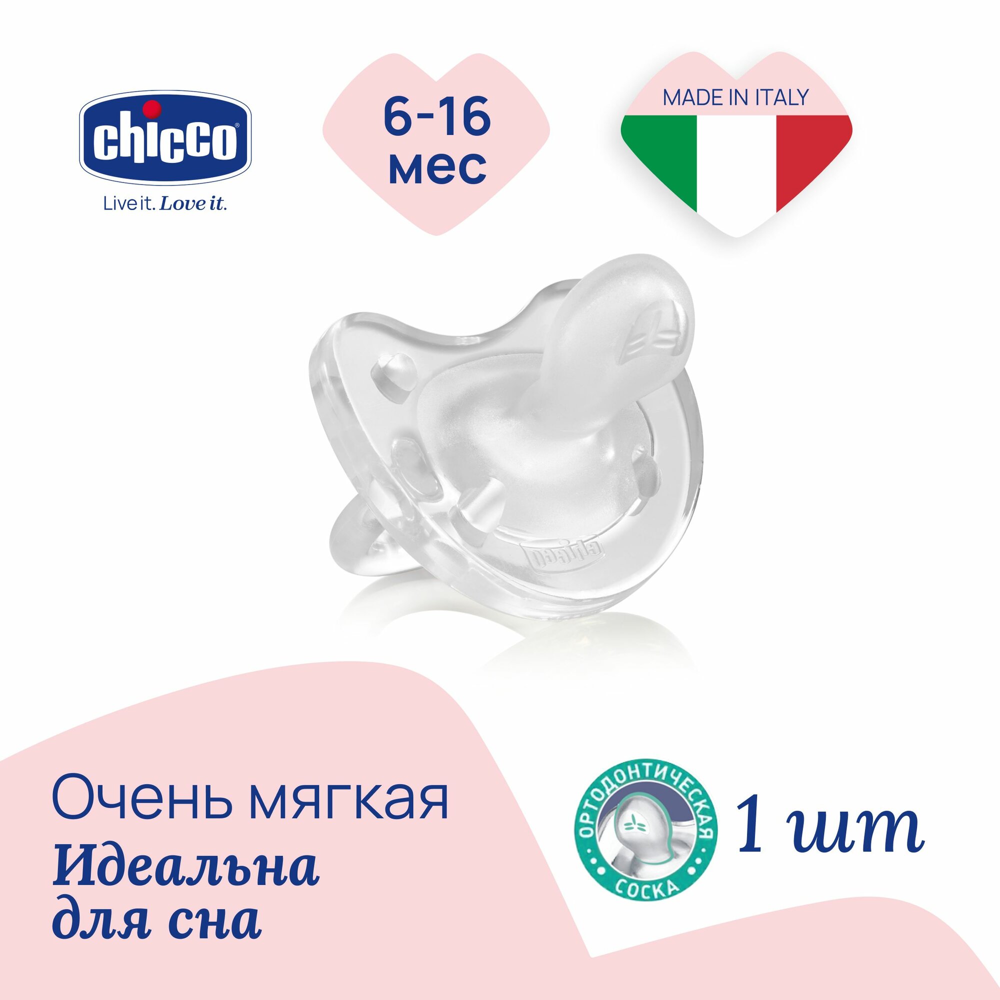 Пустышка Chicco Physio Soft анатомическая силиконовая, 6-12 мес., розовая/соска пустышка 0/для новорожденных/держатель для соски/силиконовая соска / чико/подарок новорожденному