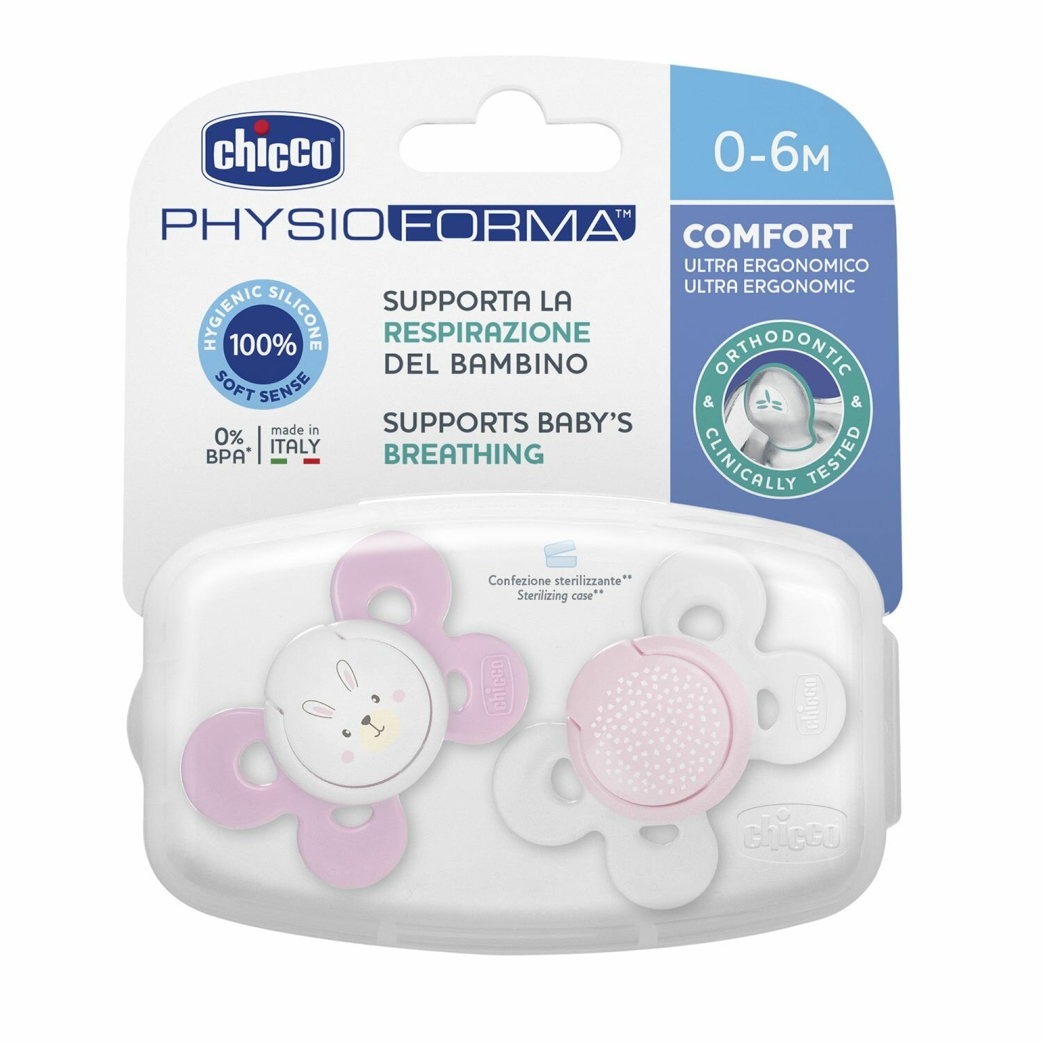 Пустышка силиконовая ортодонтическая Chicco Physio Comfort 0-6 м, розовый