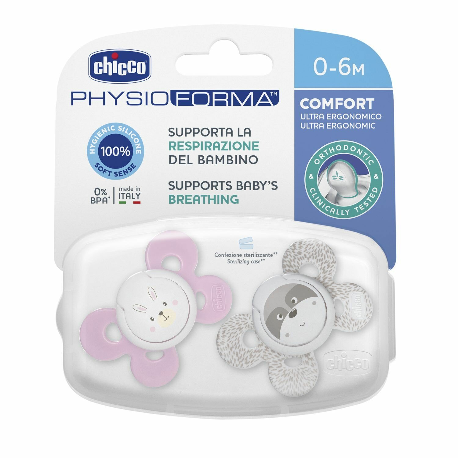 CHICCO Пустышка Physio Comfort ,1шт. ,0-6мес.+, силикон, "Белочка"