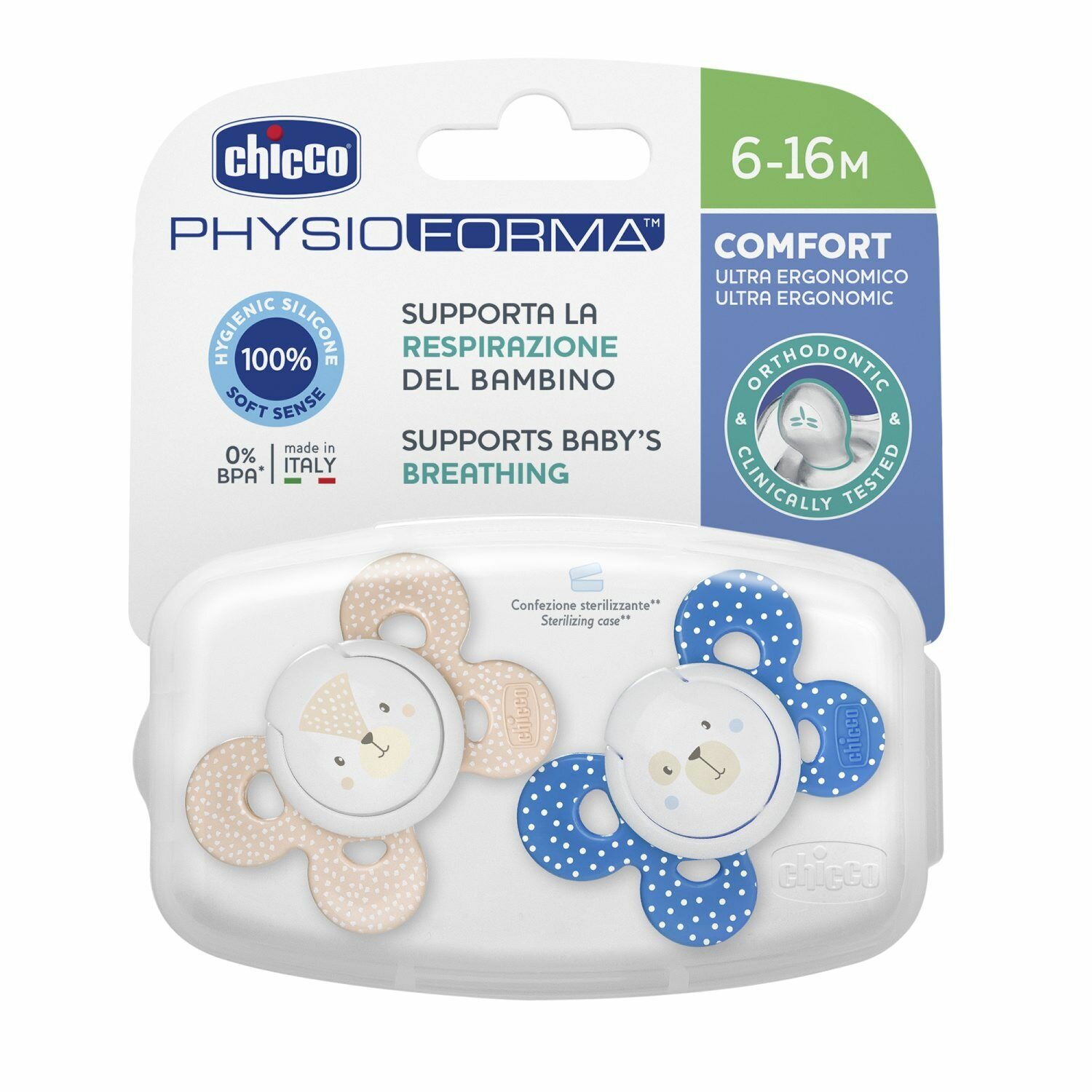 Соска пустышка силиконовая 16-36 мес Chicco Утешение Physio Comfort 2 шт, Голубой