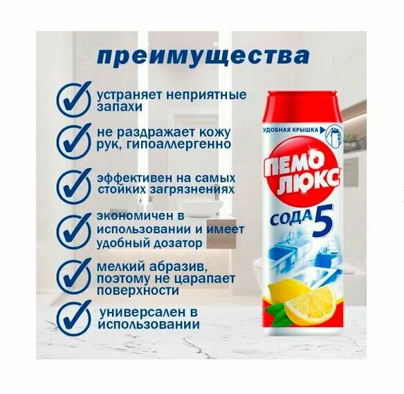 Купить 8 шт. Средство чистящее Пемолюкс "Сода 5. Лимон", порошок, 480г