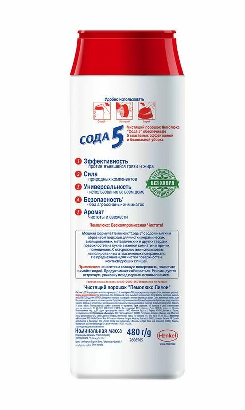 Чистящее средство 480 г, пемолюкс Сода-5, "Лимон", порошок, 2415944 (цена за 1 ед.товара)