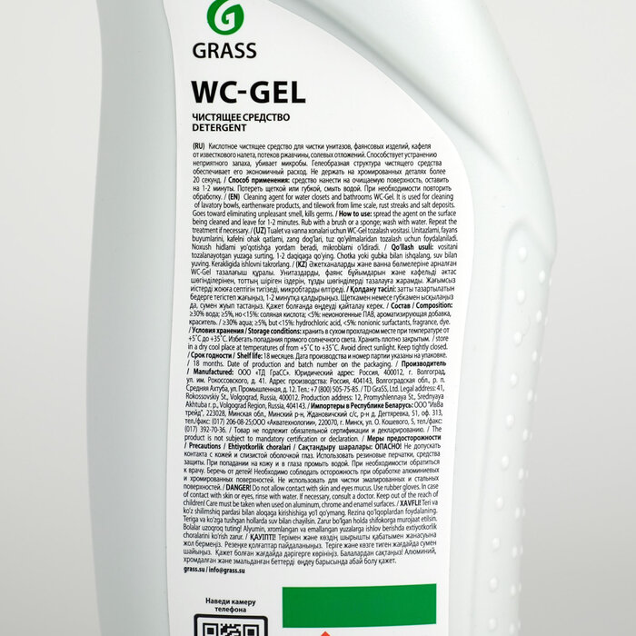 Купить GRASS Средство для чистки сантехники WC- Gel 1000 мл GRASS 125437