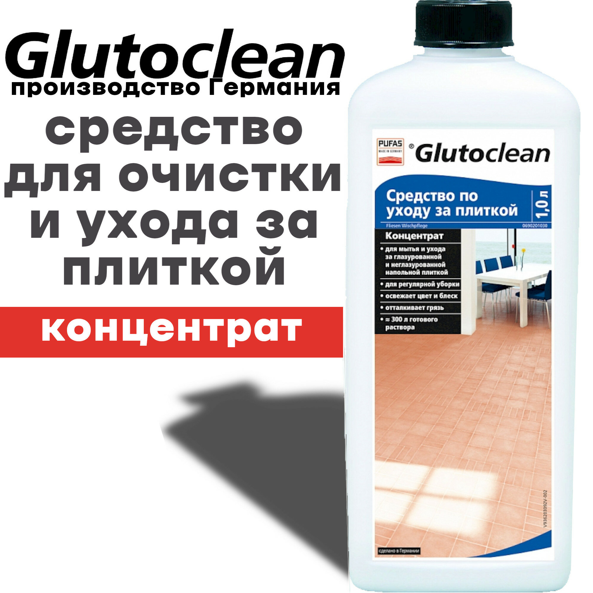 Средство по уходу за плиткой, PUFAS Glutoclean,1 л.Концентрат для очистки и ухода за плиткой. интересное: