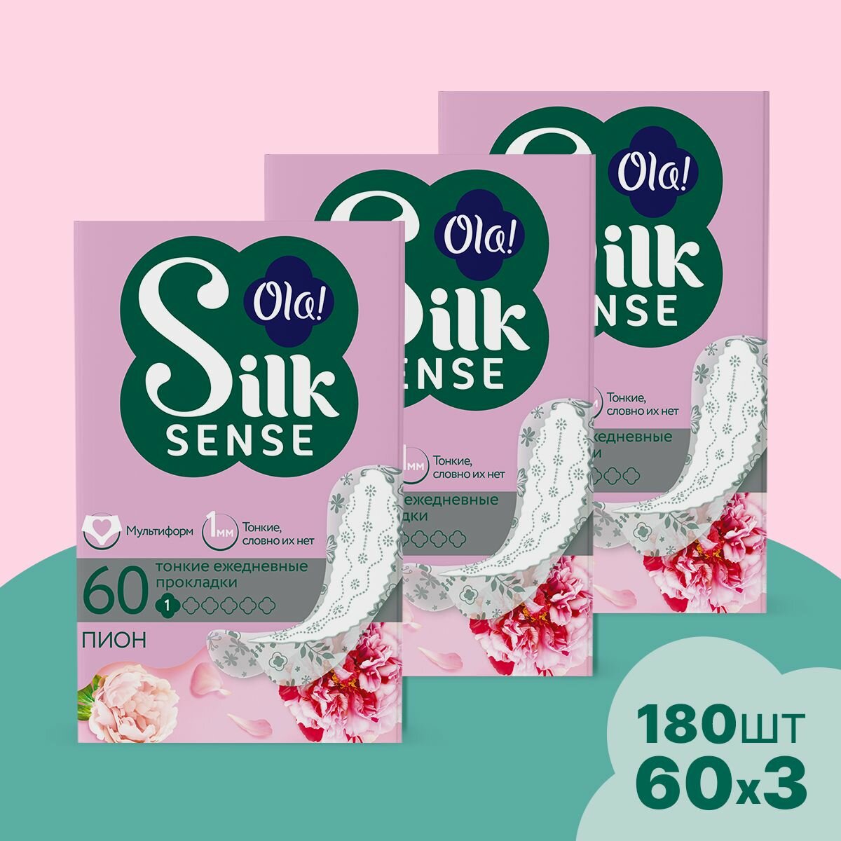 Купить Ежедневные прокладки мультиформ Ola! Silk Sense Light, аромат Пион, 180 шт. (3 уп. х 60)