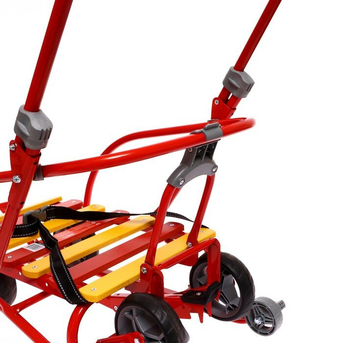 Санки Nikki 3 алый со складной спинкой и складной ручкой на 4 колесах